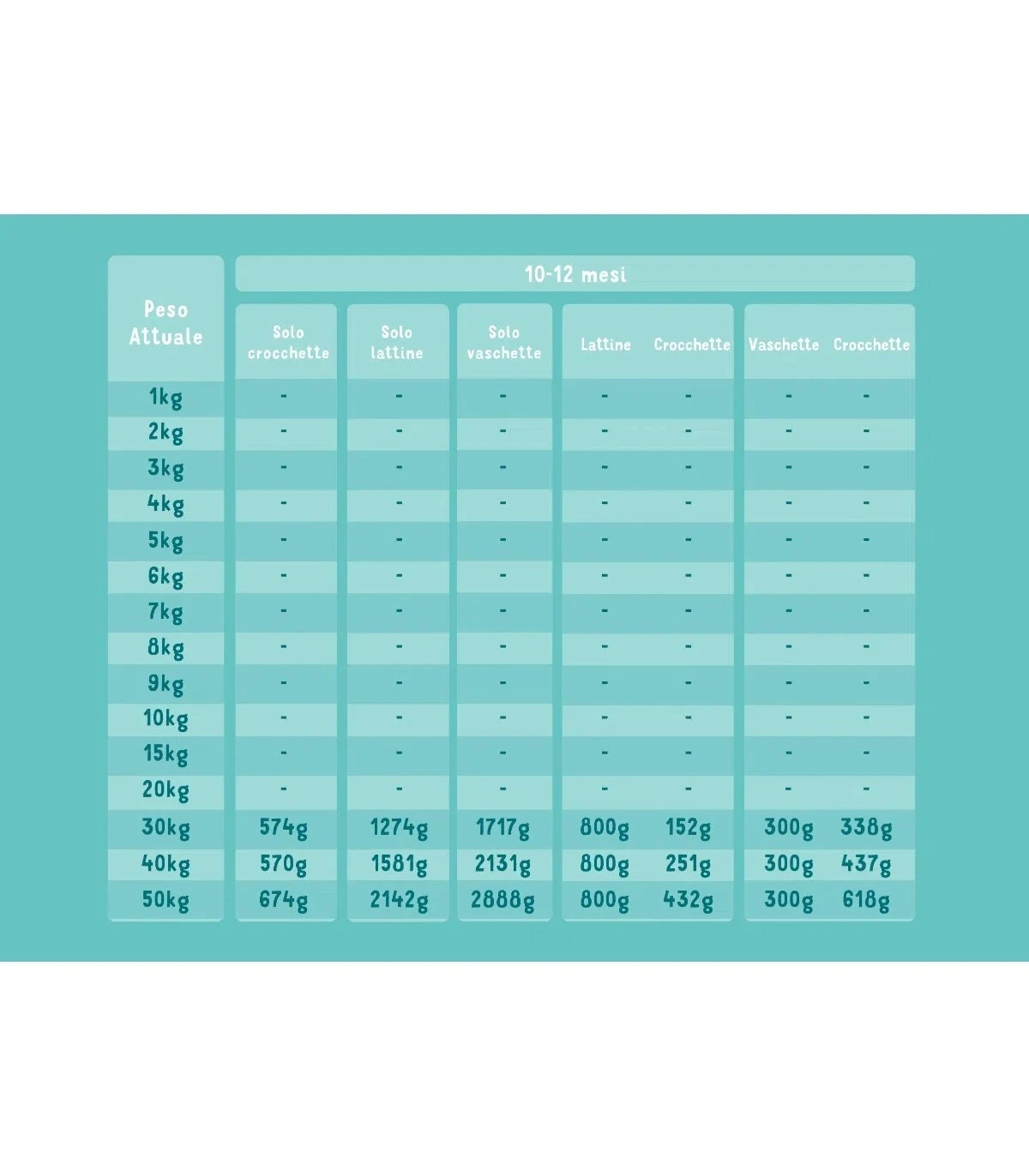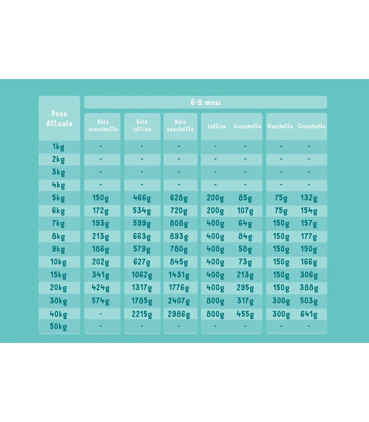 Troverai indicazioni di dosaggio per cuccioli da 0 a 12 mesi d’età.