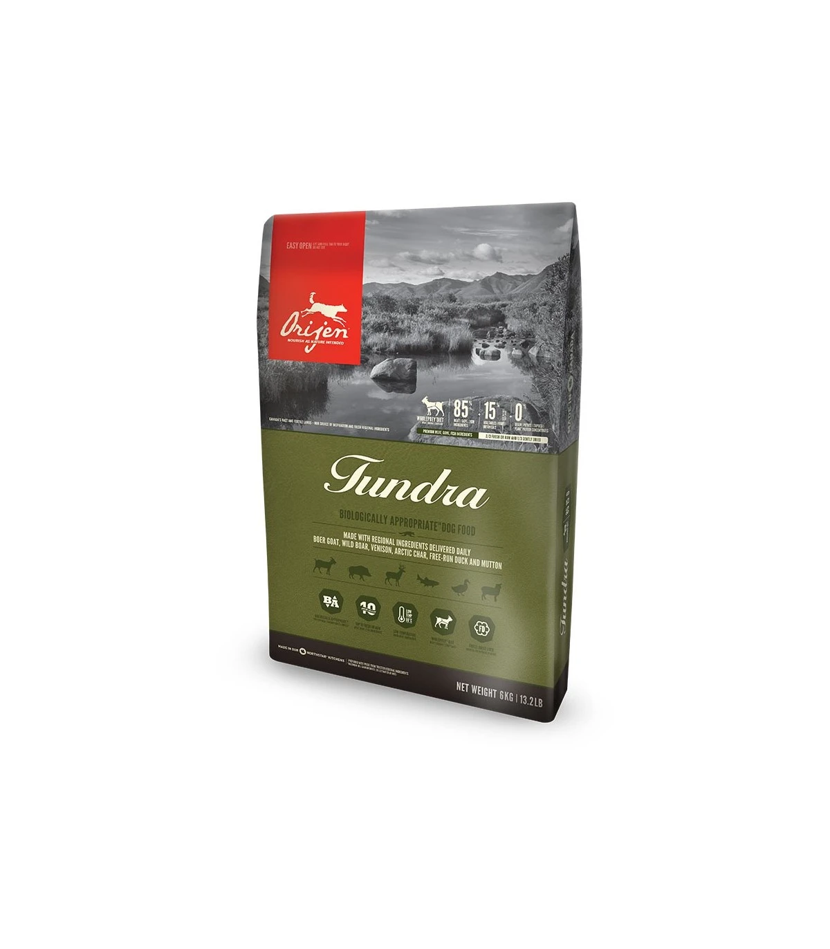 Orijen cane tundra 2 kg sono biologicamente appropriati per tutte le fasi della vita. Capra, cinghiale, cervo, salmerino alpino, anatra allevata a terra e montone freschi per via della loro evoluzione, i cani crescono al meglio con una dieta varia a base di cacciagione, pesce e volatili selvatici interi, con piccole quantità di frutta, verdura e erbe.